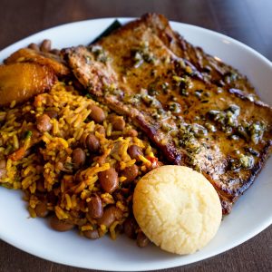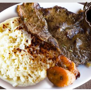 Carne Asada con Arepa y Queso / Grilled Steak with corn cake & Cheese