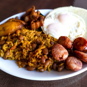 Huevos a la Cacerola con arepa y Maduros / Fried eggs with corn cake Sweet Plantain