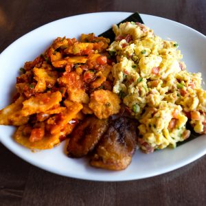 Huevos Pericos con Calentado / Scrambled Eggs with Refried Beands