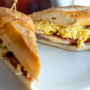 Sandwich de huevo, jamon y queso/Scrambled eggs, ham and cheese sandwich