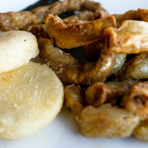 Chunchurria con migas/Chichulin with sautéed corn cake bits